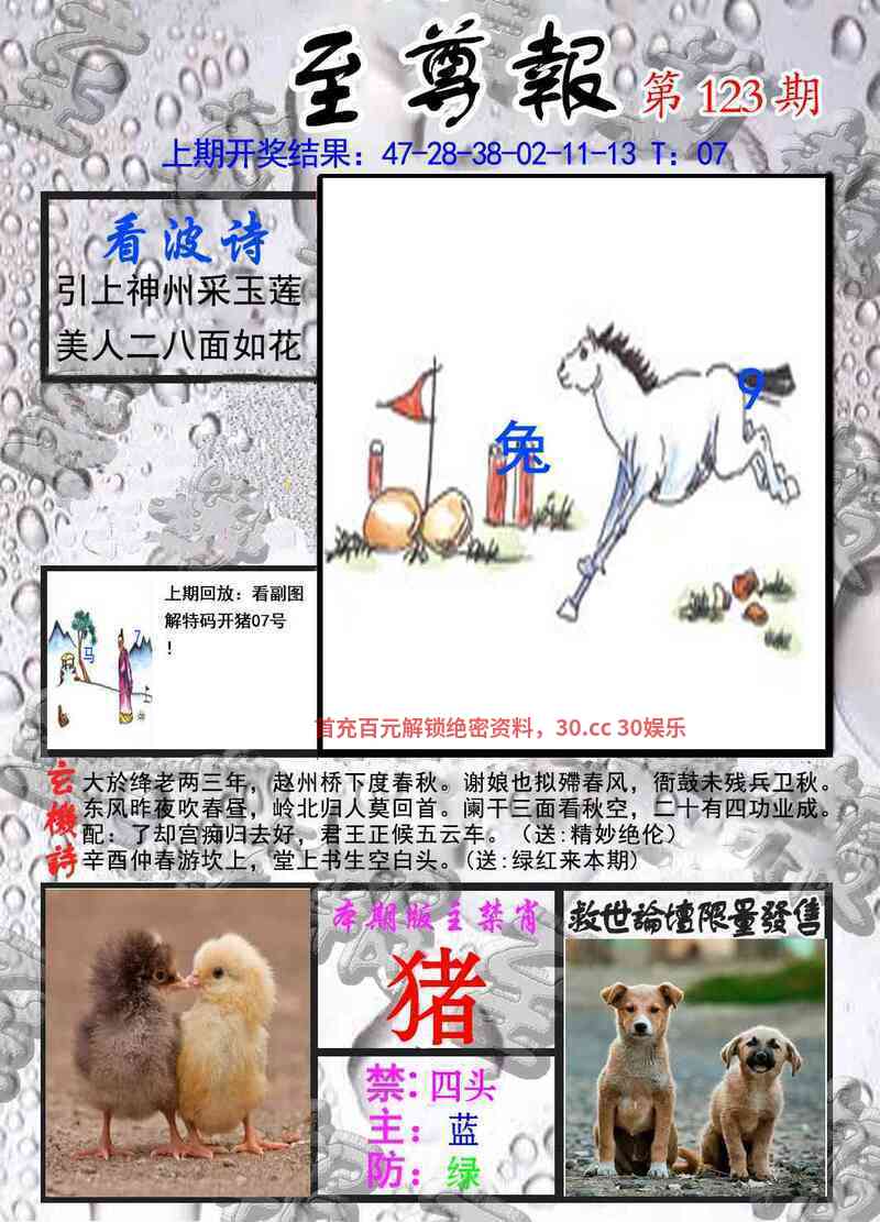 123期【马龙鸡狗兔】羊23中